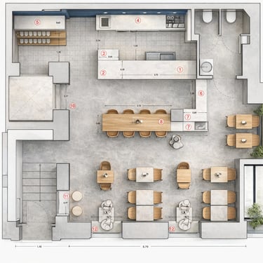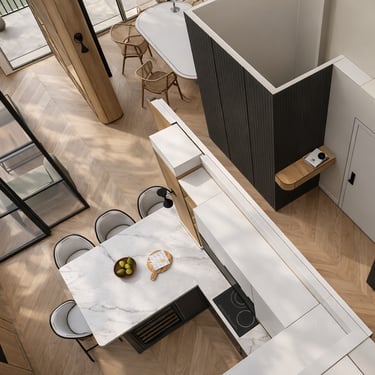 Proyectos de arquitectura e interiorismo en viviendas, espacios gastronómicos, locales comerciales y edificios dotacionales, desarrollados en Madrid y otros entornos urbanos.